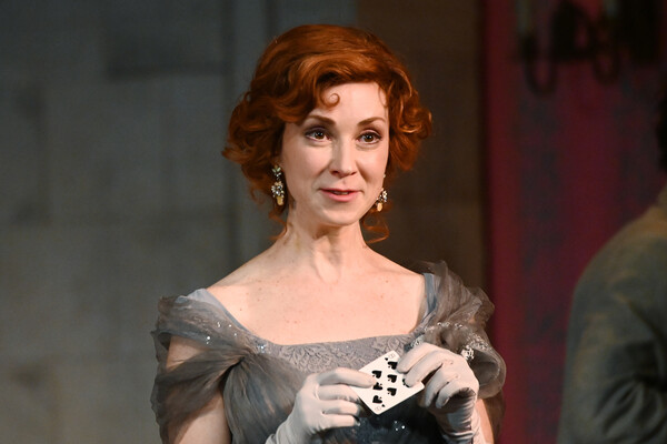 Актриса Анна Большова в роли Любови Андреевны Раневской в сцене из спектакля «Вишневый сад» в постановке режиссера реконструкции Валентина Клементьева в Московском художественном академическом театре (МХАТ) имени Максима Горького, 2020 год