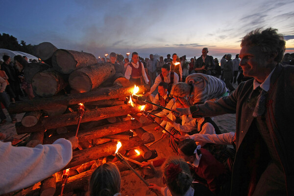 В прибалтийских лесах, где ночь в солнцестояние длится всего пару часов, девушки плели венки из желтых цветов — подношение богине Солнца Сауле. Кострам не было конца: их разводили на холмах, у рек, даже на плотах, пуская по воде. Застолья длились до утра — ели сыр с тмином, пили медовуху, а потом все вместе шли встречать рассвет, чтобы успеть собрать травы, наделенные в эту ночь особой силой. Говорили, что тот, кто найдет цветок папоротника среди дубрав, обретет мудрость веков.