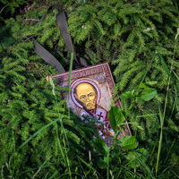На твое бо ходатайство уповающе, твоим предстательством хвалимся, твое заступление на помощь призываем и ко пресвятому образу твоему припадающе помощи просим: избави нас, угодниче Христов, от зол находящих на нас, да ради святых твоих молитв не обымет нас напасть и не погрязнем в пучине греховней и в тине страстей наших.