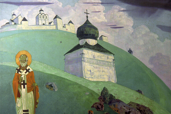 Картина художника Николая Константиновича Рериха (1874-1947) «Святой Никола». Холст, темпера, 1916 год