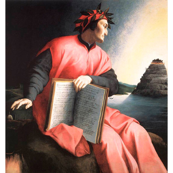Картина «Аллегорический портрет Данте» была написана в середине 16-го века, она является частью трилогии полотен «Великие поэты Тосканы, воспевающие любовь»: помимо Данте Алигьери, кисти Бронзино удостоились Франческо Петрарка и Джованни Боккаччо. Тем не менее до сегодняшних дней дошел только портрет Данте, обнаруженный в конце 20-го века одним из европейских коллекционеров.