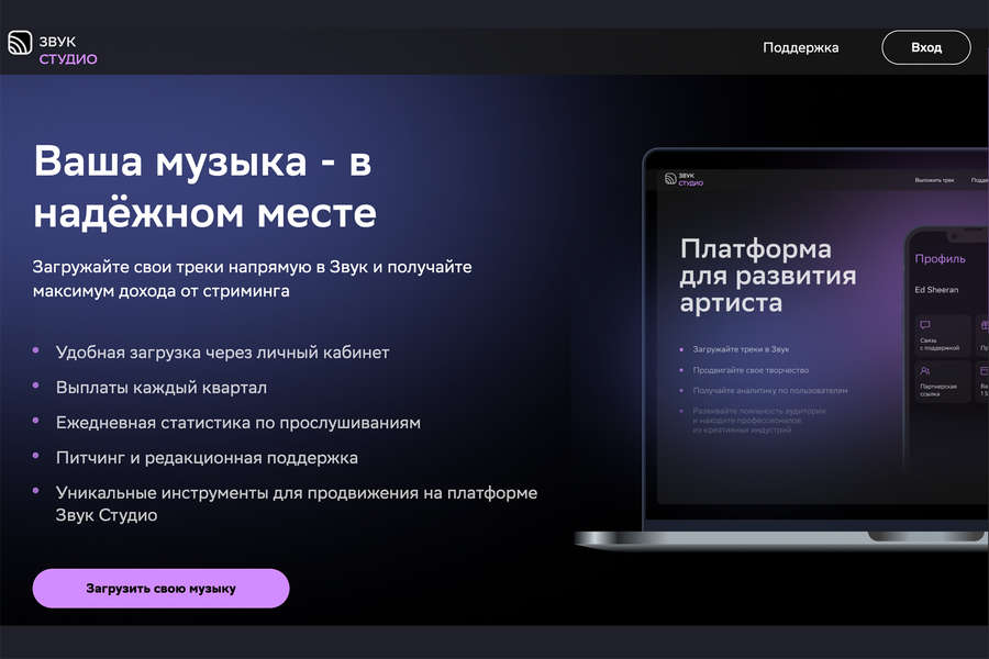Посредством загрузки треков на платформу артисты смогут монетизировать свое творчество. После презентации композиции редакции «Звука» количество прослушиваний увеличится за счет попадания в редакционные плейлисты.