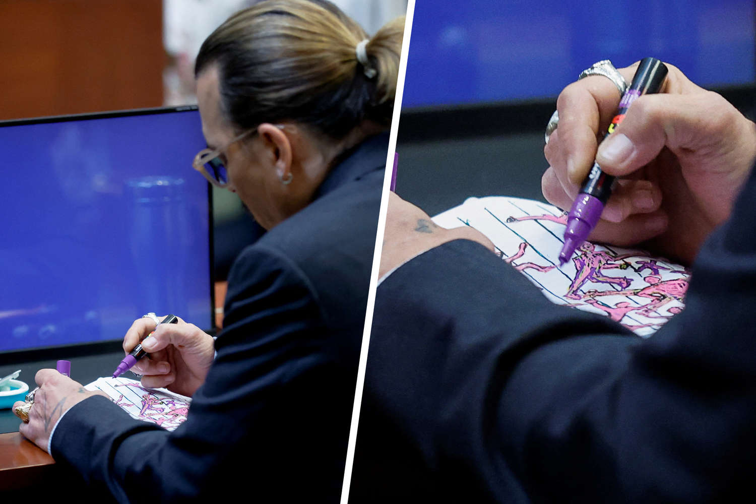 Один из рисунков Деппа был замечен во время ожидания свидетельницы Тары Робертс, управляющей островным поместьем артиста, показания которой позже передали по видео. На представленном кадре звезда «Пиратов Карибского моря» раскрашивает рисунок фиолетовыми и розовыми маркерами.