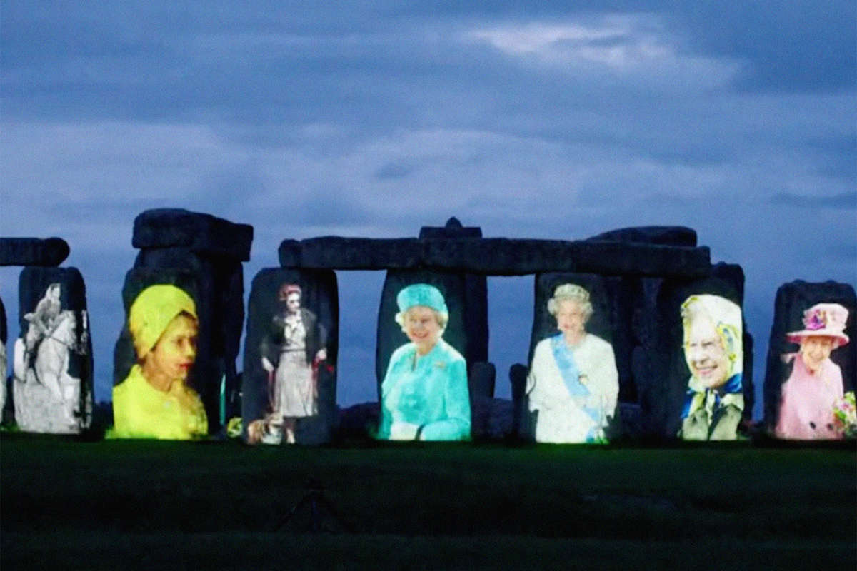 На камни Стоунхенджа нанесли портреты Елизаветы II