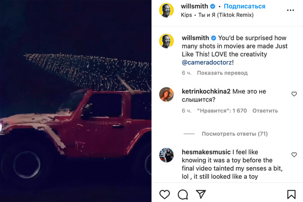 19 января Американский актер Уилл Смит выложил видео в Instagram под ремикс песни исполнителя Xcho «Я и ты». На кадрах показан процесс создания видеоролика с автомобилем. Однако пользователи раскритиковали Смита в комментариях.