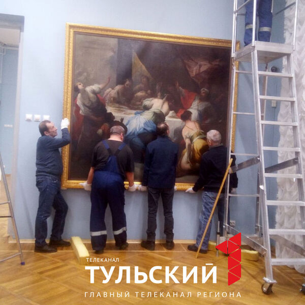 Жителям Тулы показали восстановленную после пожара картину «Пир Валтасара» неизвестного художника, сообщает канал «Первый Тульский».