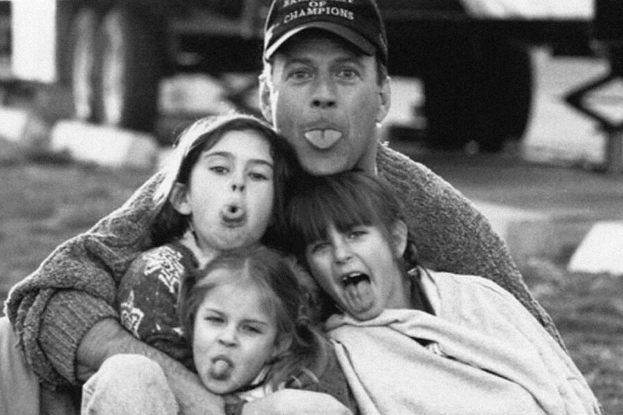 У себя в Instagram (владелец компания Meta признана в России экстремистской и запрещена) Деми Мур опубликовала архивное черно-белое фото Уиллиса с их тремя дочерями.