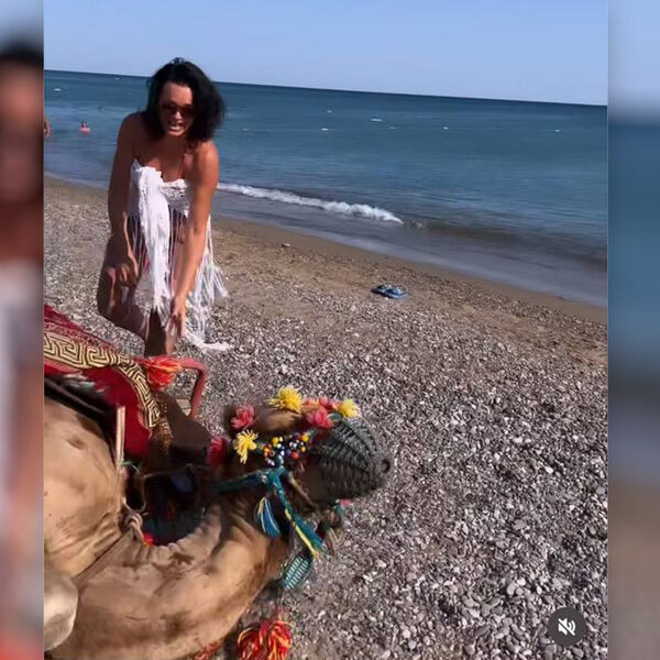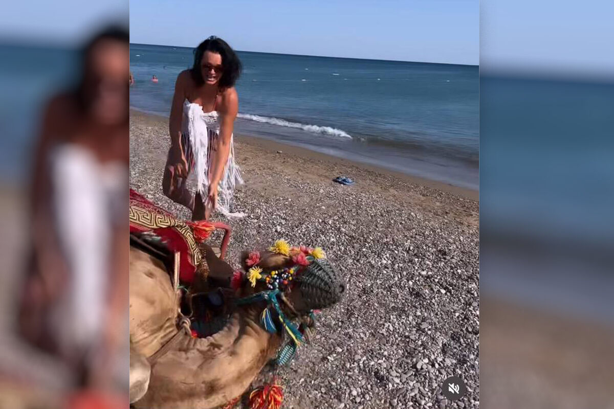 Верблюд сидел на берегу моря с хозяином. Мужчина пригласил Славу покататься на верблюде, и тот упал на бок под весом певицы.