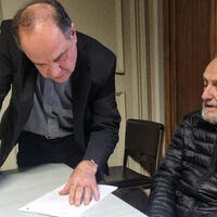 Бывший хранитель реликвария курии Новары Франко Черрути (справа на фотографии), чья подпись стоит на документе подлинности, покинул должность еще в 2015 году, но сертификат датирован 2018 годом, а сам Данилов утверждает, что приобрел их в ноябре 2023-го.