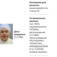 «Пол женский, национальность татарка, дата рождения 21 июля 1994 года рождения, место рождения республика Татарстан», — говорится в карточке министерства.