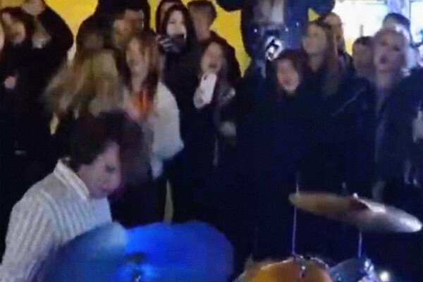 На видео можно разглядеть несколько десятков поющих молодых людей.