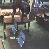 Как можно заключить из записей с камер видеонаблюдения, у актера зашла крупная ставка, после чего он начал кричать, вскочил на стол и упал с него, подходил общаться с персоналом.