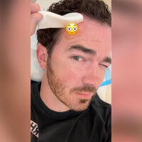 Джонас также снял видеоселфи после операции и сдвинул повязку, чтобы показать свежий шрам. При этом место шрама он прикрыл эмоджи.