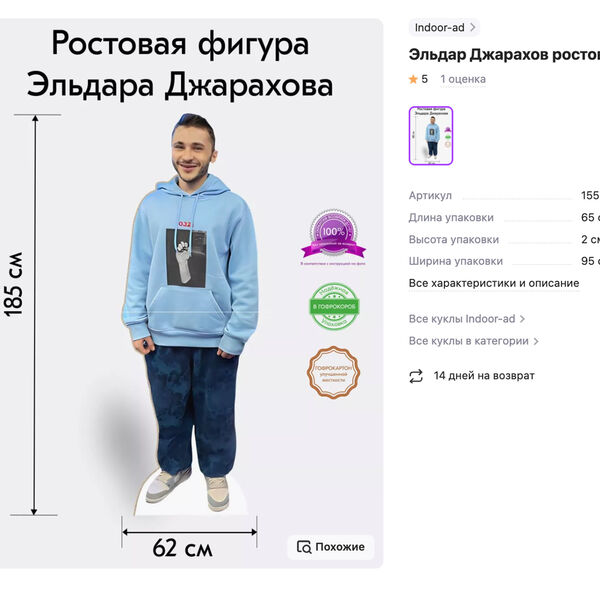 На российском маркетплейсе продают ростовую фигуру Эльдара Джарахова, которая выше блогера на 30 см.