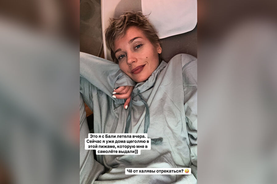 «Сейчас я уже дома щеголяю в этой пижаме, которую мне в самолете выдали. Че от халявы отрекаться?» — подписала она фото, сделанное в самолете.
