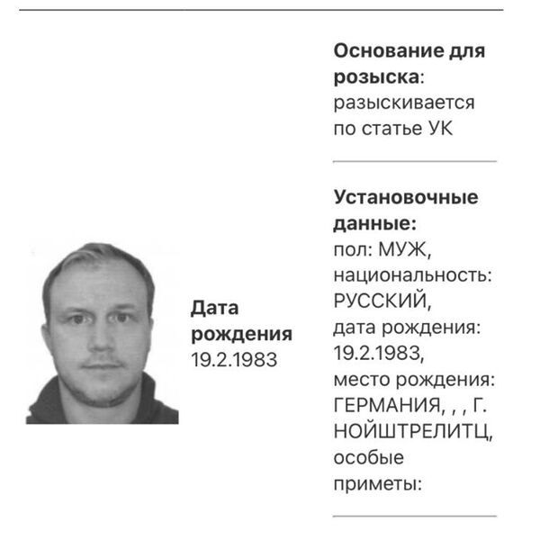 В базе уточняется, что он разыскивается по неназванной статье Уголовного кодекса РФ.