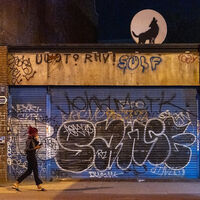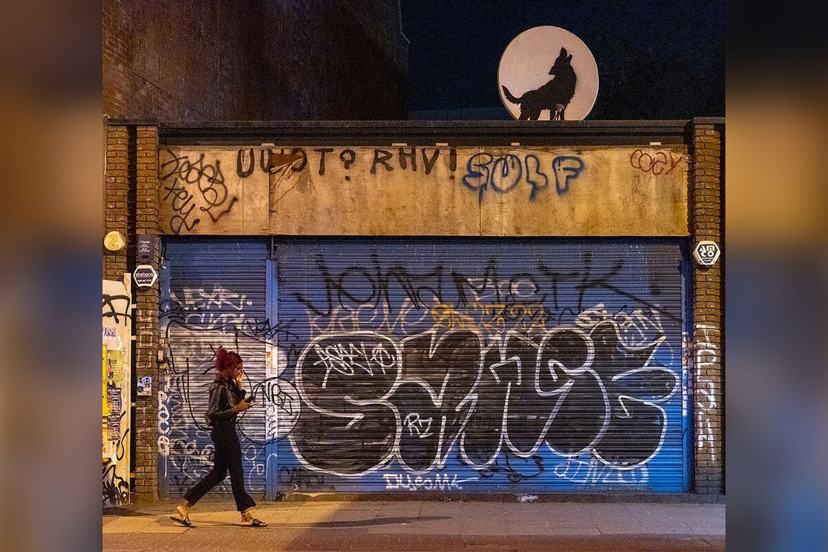 Граффити было нарисовано на спутниковой антенне на крыше здания в Пекхэме, юго-восточный Лондон. Работа изображала воющего на небо волка. Она стала четвертой картиной из новой серии, представленной Бэнкси на этой неделе.