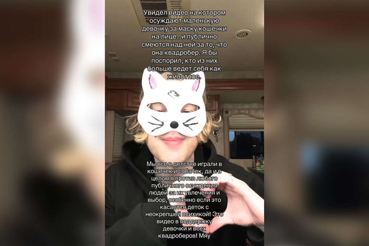 Крид опубликовал ролик, в котором предстал в маске кота. Он осудил людей, которые насмехаются над девочкой-квадробершей.