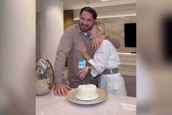 Омарова опубликовала ролик, в котором она с мужем разрезает торт. Начинка показывает, кто у них родится. Она оказалась голубой. Это значит, что у пары появится на свет мальчик.