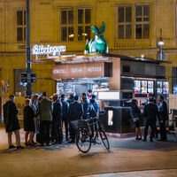 Издание отмечает, что уличная сосисочная лавка известна тем, что объединяет людей разных классов и слоев общества, а также имеет свой собственный отличительный словарь.