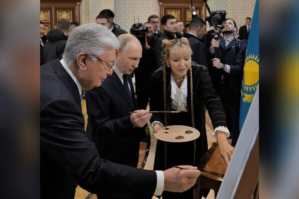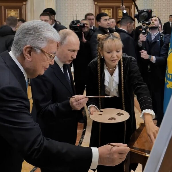 30-летняя Сабыржанкызы начала писать картину, когда Путин вылетел из Москвы в Астану, а в создании последних штрихов к полотну приняли участие президенты обоих государств.
