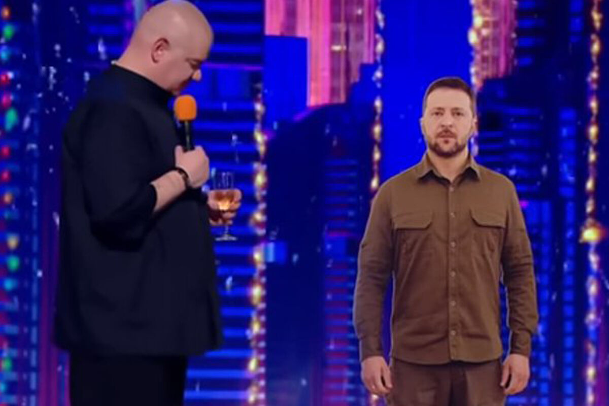 Студия «Квартал 95», одним из основателей которой был действующий президент Украины Владимир Зеленский, в первый раз после начала СВО пошутила над политиком на своем новогоднем концерте. Запись размещена на YouTube-канале компании.