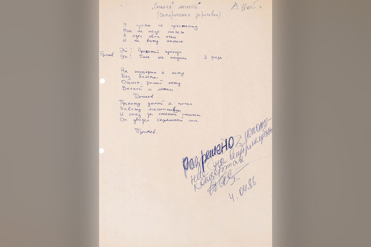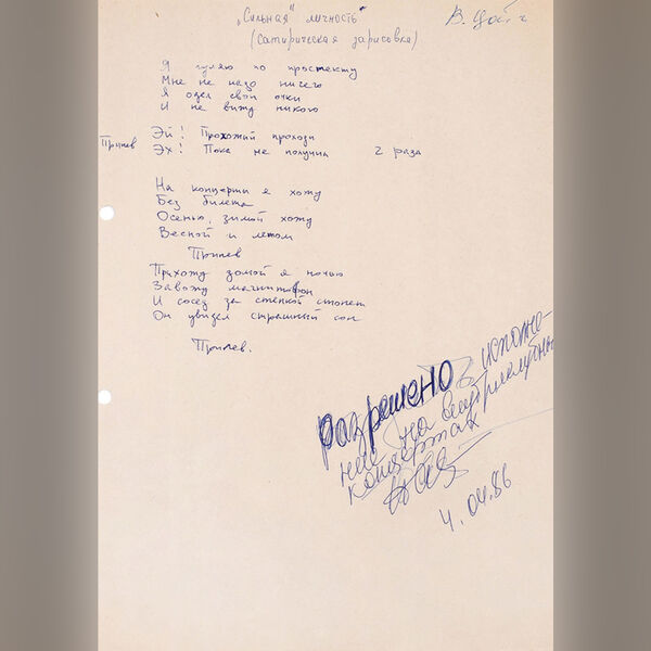 Стартовая цена рукописи песни «Прохожий» с автографом исполнителя составляет 1,5 млн рублей. Также на листке имеется виза журналистки Нины Барановской, которая работала в Ленинградском межсоюзном доме самодеятельного творчества, о допуске композиции к исполнению в клубах.