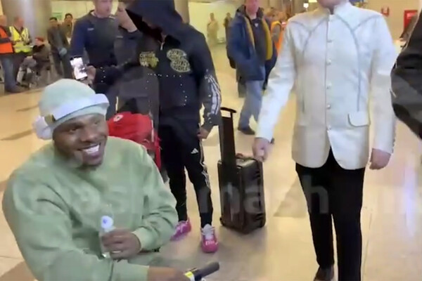 Артист летел с пересадкой в Стамбуле, во Внуково его, спутниц и охрану рэпера встречал ансамбль с баяном, исполнивший русскую народную песню.