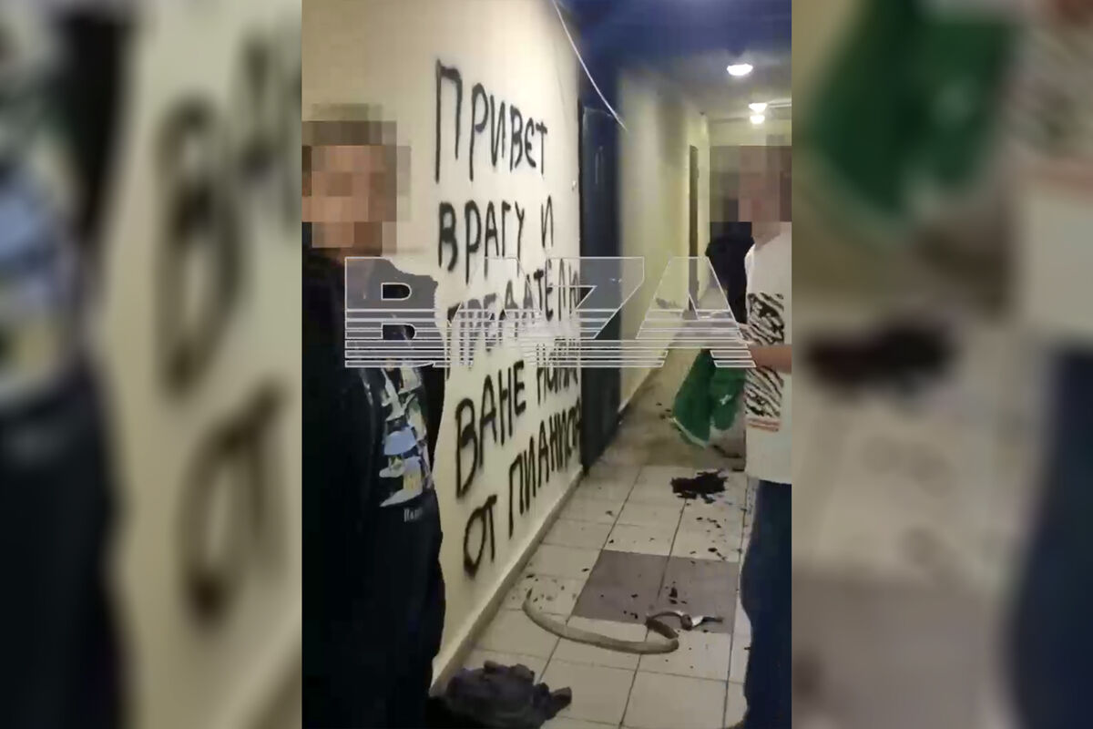 «Привет врагу и предателю Ване Нойз МС», — написал он на стене у двери.