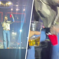 Post Malone исполнял трек «Pour Me A Drink» с пластиковым стаканом в руках, когда, судя по завирусившемуся в сети ролику, заметил в первом ряду фаната с бокалом. Тогда артист решил чокнуться с поклонником, но упал, поскольку балка на краю сцены оказалась не закреплена.