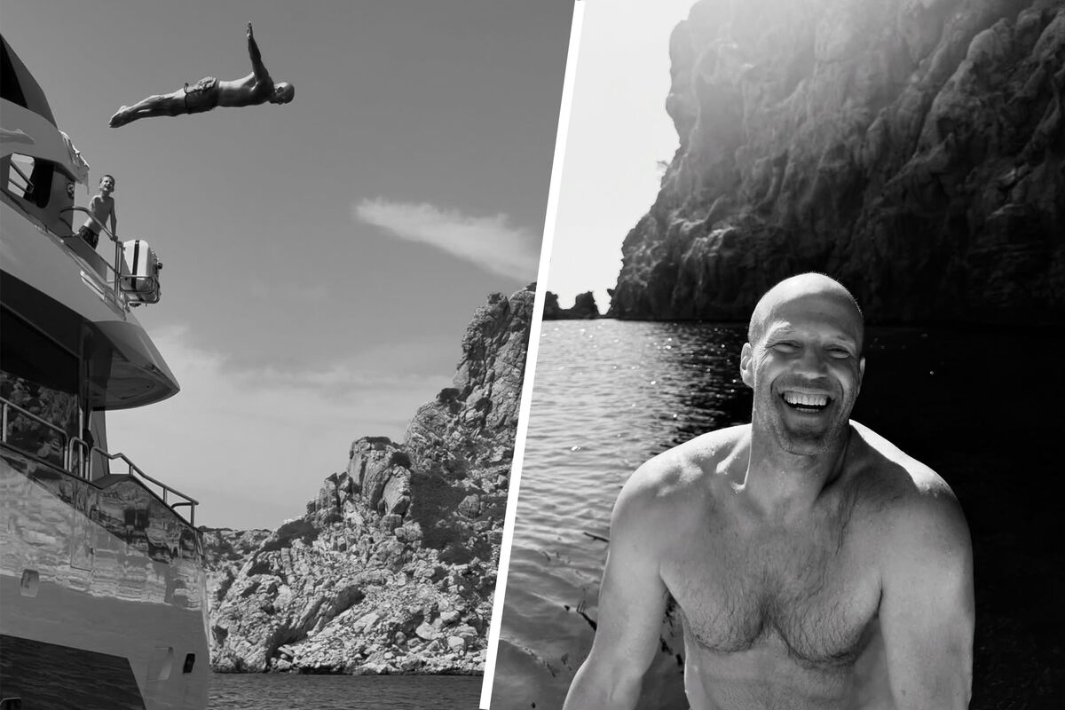 57-летний артист прыгнул в одних купальных трусах вниз головой с девятиметровой высоты. Прыжок в воду он совершил с яхты.