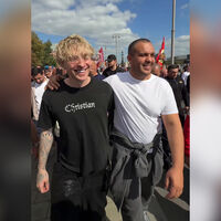 Крид посетил храм вместе с президентом Международной ассоциации бокса Умаром Кремлевым. На службу исполнитель надел футболку с надписью «Christian» («христианин» — перевод с английского. «Газета.Ru»).