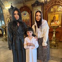 В этом же храме проходило отпевание музыканта. На одном из снимков Карицкая позирует с, предположительно, крестной матерью шестилетнего Ивана.