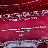 СМИ публикует фотографию, которая якобы сделана во время выступления американской артистки. В сообщении сказано: «Гага, ты вдохновение для нескольких поколений. Россия тебя любит!»