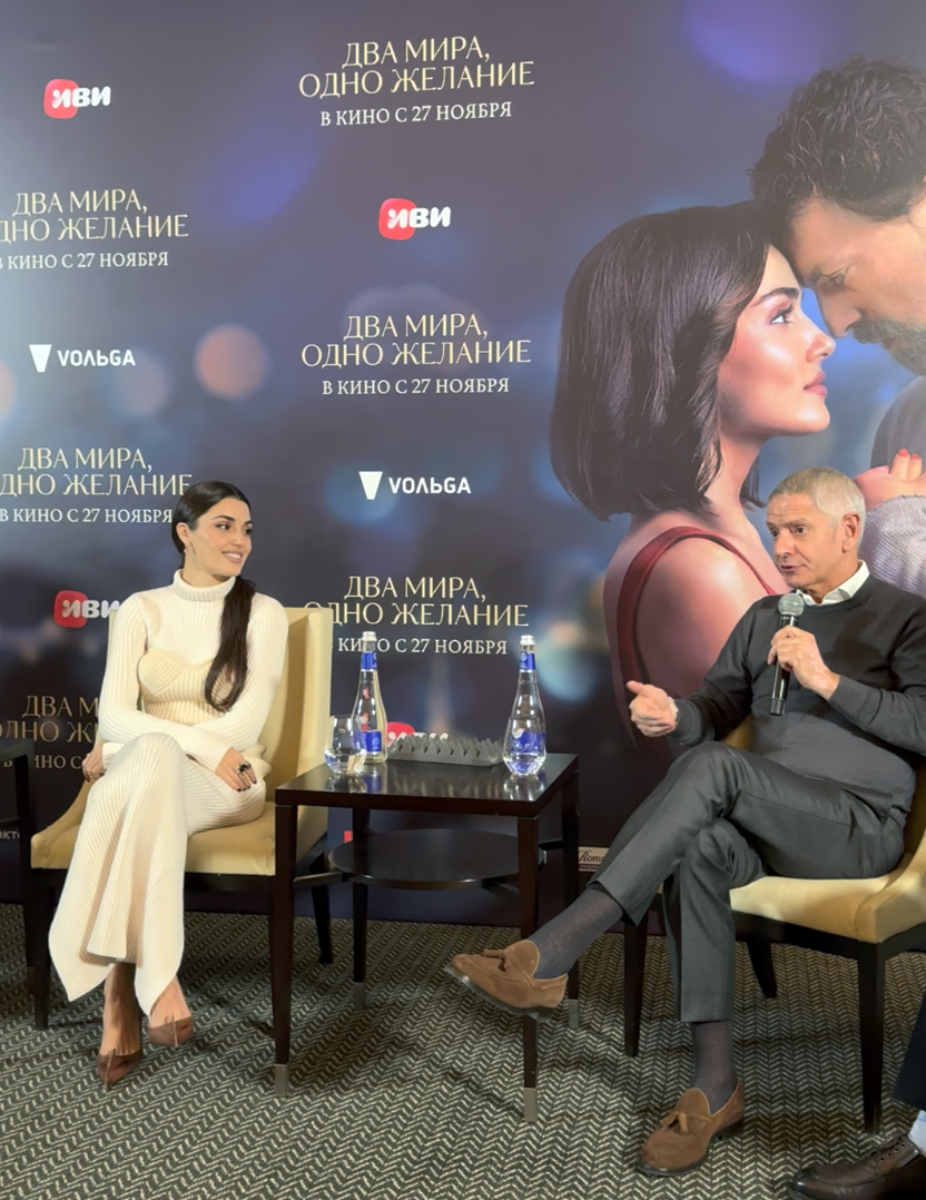 На пресс-конференции продюсера спросили, когда он привезет Ханде Эрчел в Россию в третий раз. На этот вопрос артистка показала два больших пальца вверх. Продюсер Джемал Окан отметил, что это будет зависеть от актрисы. Джан Окан добавил, что рад представлять фильм «Два мира, одно желание» в России.