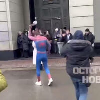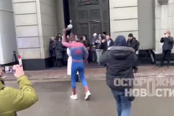 На заседание по делу о квартире певицы Ларисы Долиной приехал мужчина в костюме человек-паука и был задержан. Видео инцидента опубликовал Telegram-канал «Осторожно, новости».