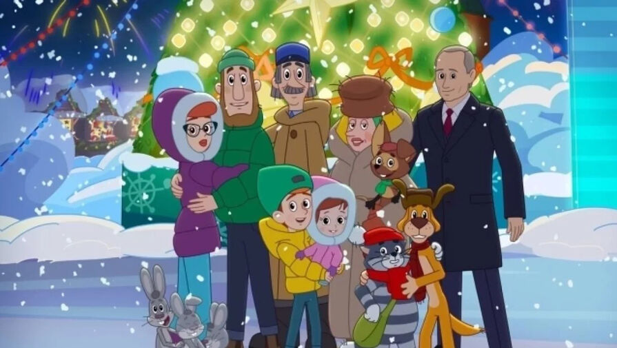 До этого СМИ стали публиковать кадры с анимационным изображением российского главы и героями мультсериала Котом Матроскиным, Дядей Федором, Почтальоном Печкиным и другими.