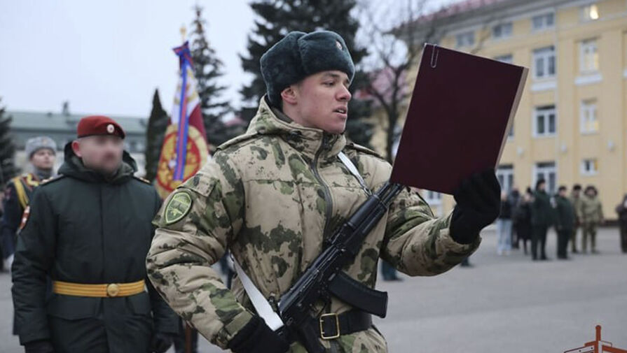 В Росгвардии добавили, что принятие военной присяги началось с выноса Государственного флага РФ, Боевого знамени дивизии и исполнения гимна России. После новобранцы поочередно выходили из строя и читали вслух текст военной присяги.