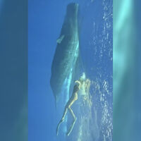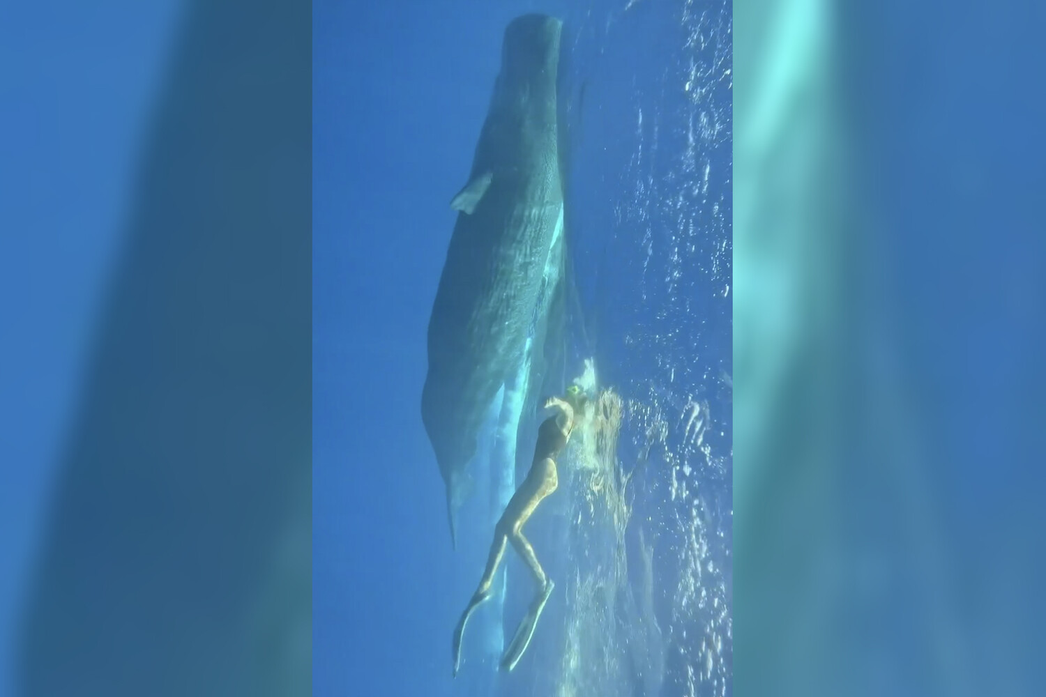 «Когда я прыгнула в воду, рядом со мной было два кашалота, и никто из нас не заметил, что сзади ко мне приближался еще один. Он двигался прямо на меня. Это было действительно опасно — он мог задеть, ранить или даже случайно поглотить меня», — размышляет она.
