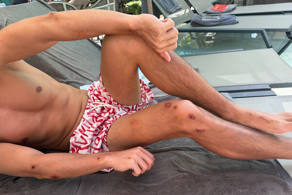 Певец Хабиб Шарипов, более известный как Хабиб, в Telegram-канале показал тело после падения с мотоцикла.