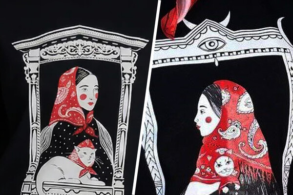 Яне Антоновой одна из футболок — с девушкой, наличниками и котом — напомнила ее работу, созданную в коллаборации с другим брендом в 2023 году. Максим Алибеков, в свою очередь, нашел один из принтов схожим со своей работой «Коды России» — стилизованным триколором, созданным в начале июня 2025 года.