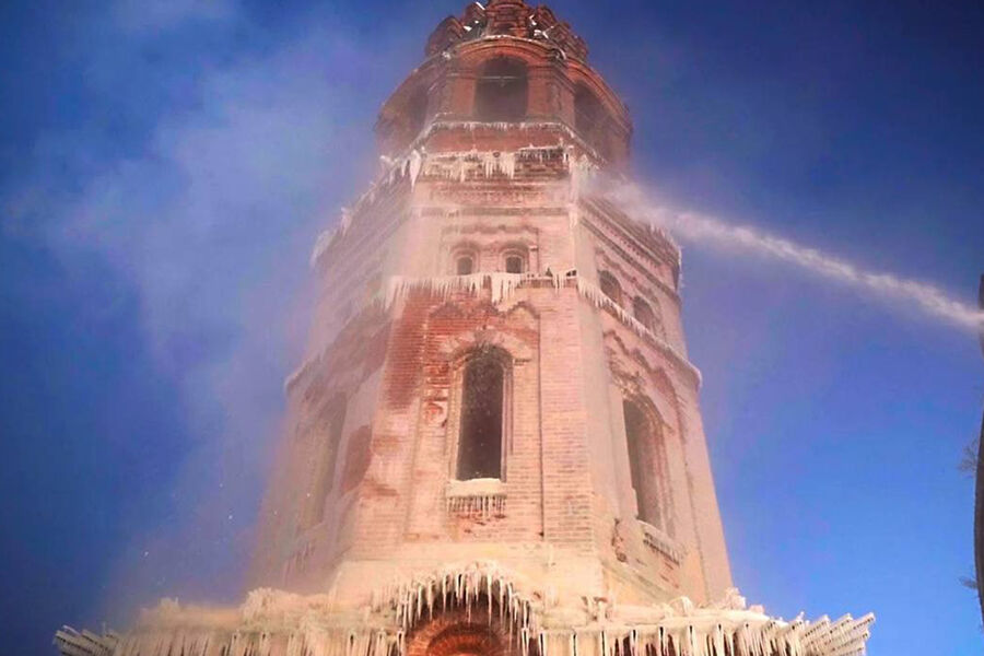 Съемки, уточняет канал, проходили в деревне Нижние Подгоричи. Местный храм Николая Чудотворца XIX века облили в мороз водой для съемок, чтобы сымитировать ледяной дождь.