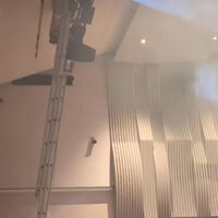 Концерт был остановлен, на место происшествия вызвали пожарных-спасателей. Они с помощью стремянки поднялись наверх и сняли оставшуюся часть конструкции.