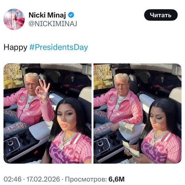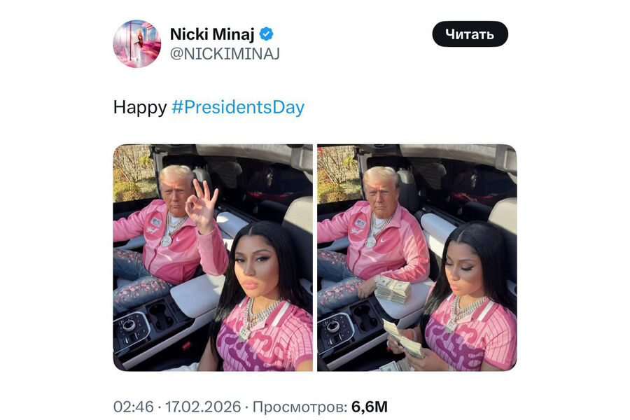 Тринидадская рэперша Ники Минаж поздравила Дональда Трампа с Днем президента США романтичным фото, сделанным с помощью искусственного интеллекта (ИИ). Новым изображением она поделилась в социальной сети X.