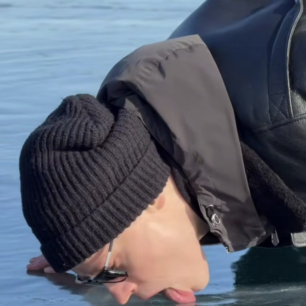 Дронов опубликовал видео, как лижет замороженную воду озера. Артист заявил, что ему вкусно.