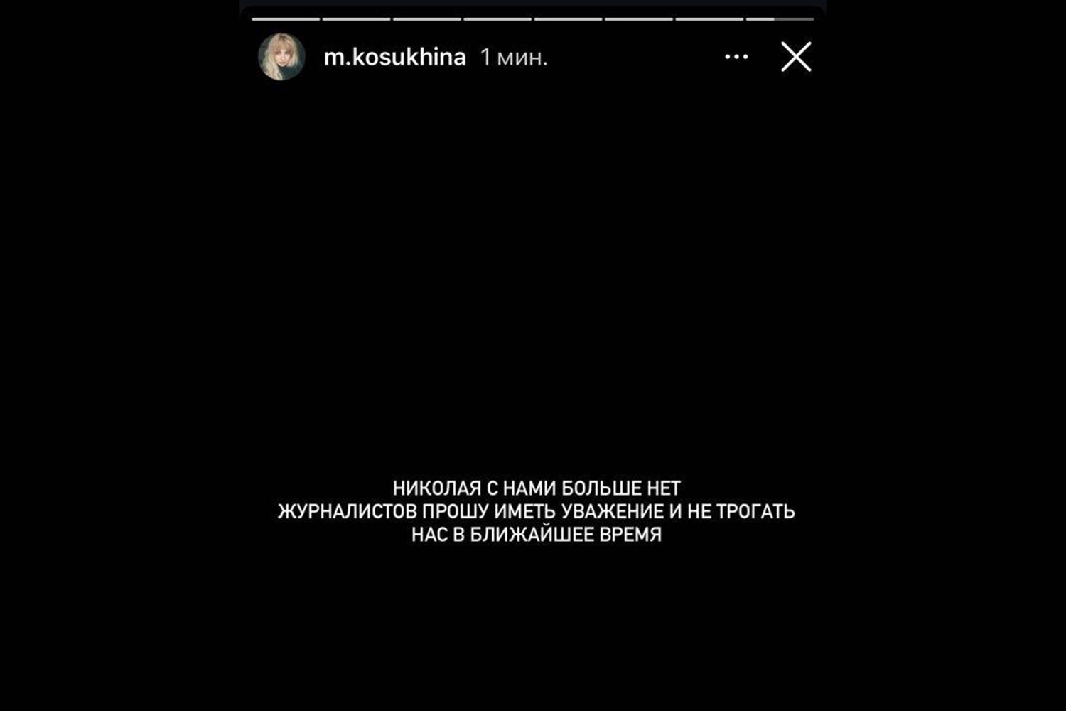 «Николая с нами больше нет. Журналистов прошу иметь уважение и не трогать нас в ближайшее время», — написала она.