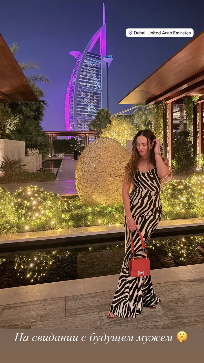 Звезда поделилась в Stories фотографией, на которой позирует в стильном макси‑платье с зебровым принтом. Ее образ дополнила аккуратная красная сумка. Под снимком Бузова оставила интригующую подпись: «На свидании с будущим мужем».
