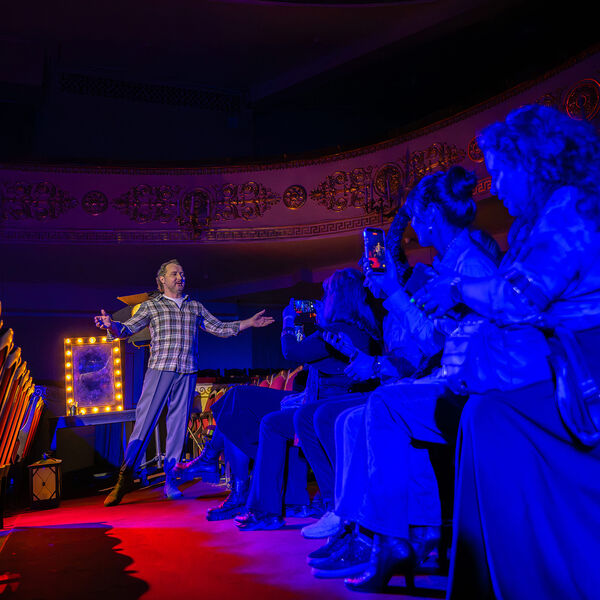 Здесь же состоялась специальная театрально-развлекательная программа. В Театральном зале зрители увидели технологический перформанс «В ученом обществе» режиссеров Иры Криворуковой и Вани Заславца — интерпретация рассказа Антона Чехова «Каштанка». Также гостям показали сокращенную версию спектакля «Без Есенина» режиссера Дмитрия Сердюка по пьесе Влада Васюхина от Театра «Кашемир». Были показаны номера из мюзикла «Вальс-бостон» (Культурный центр «Москвич»), в основу сюжета которого легли песни Александра Розенбаума.