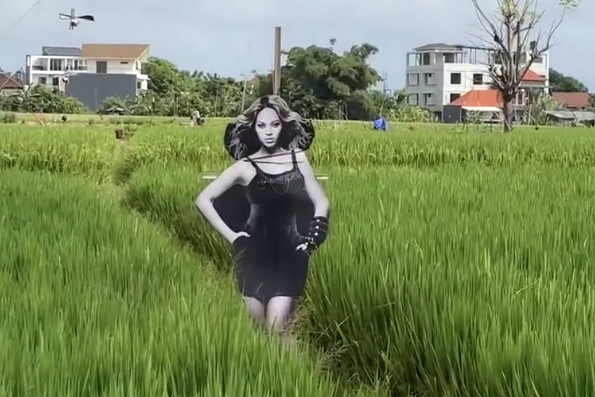 На Бали местный фермер установил на поле картонное пугало в виде американской певицы Бейонсе. Снимками пугала поделился на своей странице в социальной сети Instagram (владелец компания Meta признана в России экстремистской и запрещена) блогер из Индонезии Ферис.