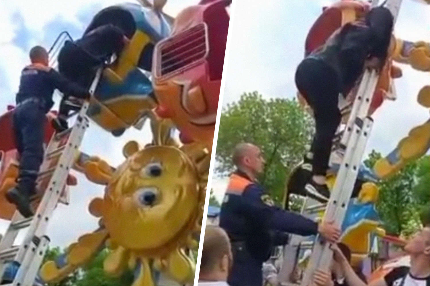 Видео происшествия появилось в социальных сетях. Самостоятельно выбраться с шестиметровой высоты дети не могли, спасатели эвакуировали посетителей аттракциона с помощью выдвижной лестницы.